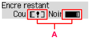 A, dans la figure ci-dessous, indique le niveau d'encre restant.