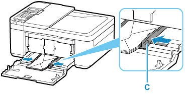Utilizaţi ghidajul pentru hârtie (C) din partea dreaptă pentru a glisa ambele ghidaje pentru hârtie până la capăt.