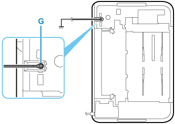 连接地线时,用螺丝钉将其与位于本机底部的框架接地(G)固定。安装打印机时,请务必小心不要使打印机压毁地线。