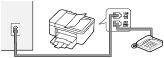 Telefonu yazıcıya bağladığınızda, yazıcının kapalı olduğundan emin olun, modüler kablonun bir ucunu yazıcıdaki "EXT." işaretinin yakınındaki harici aygıt jakına bağlayın ve ardından diğer ucu telefonun telefon hattı jakına bağlayın.