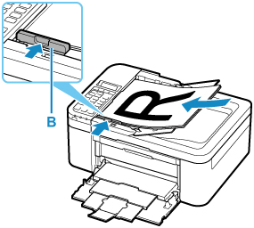 Belge kılavuzunu (B) belgenin genişliğine uygun olarak ayarlayın.