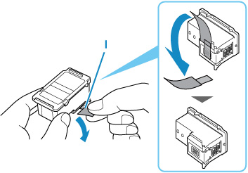 أخرِج خرطوشة FINE الجديدة من عبوتها وقم بإزالة الشريط الواقي (I) برفق.