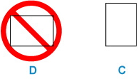 قم دائمًا بتحميل الورق بالاتجاه الطولي (C). يمكن أن يؤدي تحميل الورق بالاتجاه العرضي (D) إلى انحشار الورق.