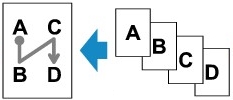 يمكنك نسخ أربع صفحات من المستندات الأصلية على ورقة واحدة عن طريق تصغير حجم كل صورة. تتوفر أربعة تخطيطات مختلفة.