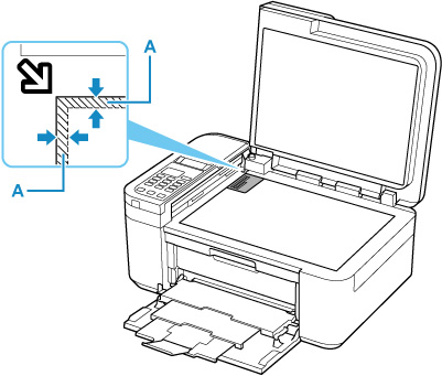 ضع بطاقة الهوية بحيث يكون الجانب الخلفي مواجهًا للسطح الزجاجي، مع ترك مسافة قدرها 2 مم (0.08 بوصة) أو أكثر بين حواف السطح الزجاجي (المنطقة المخططة بخطوط مائلة (A))، ثم اضغط على الزر موافق (OK).
