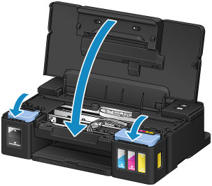 • If you cannot properly close the ink tank cover, check if you forgot to insert any tank caps of the ink tanks. If the tank cap is left on the tank cap holder, the ink tank cover cannot be closed.