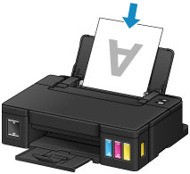 Aby załadować papier na tylną tacę, włóż go STRONĄ DO ZADRUKOWANIA SKIEROWANĄ DO SIEBIE.