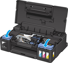Якщо виконувати наведені нижче процедури заміни, не відкриваючи кришки чорнильниць, у вас може не вийти виконати друк належним чином. Не закривайте кришки чорнильниць до заміни друкуючої головки.