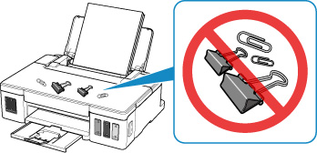 Placer ikke genstande på topdækslet. De falder ned i den bagerste bakke, når topdækslet åbnes, og forårsager fejl på printeren. Placer også printeren på steder, hvor der ikke falder genstande ned på den.