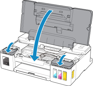 Tärkeää- Jos et kunnolla pysty sulkemaan mustesäiliön kantta, tarkista, oletko unohtanut asettaa jonkin mustesäiliöiden säiliön korkeista.