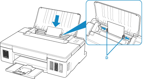 Lijn de papiergeleiders (D) uit met de papierbreedte.