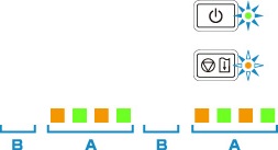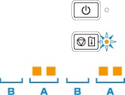 عند حدوث خطأ في الطباعة مثل الذي يفيد بنفاد الورق من الطابعة أو انحشار الورق فيها، سيومض المصباح تنبيه (Alarm) أو سيومض المصباح تشغيل (ON) والمصباح تنبيه (Alarm) بالتناوب وفقًا لتفاصيل الخطأ الذي حدث. يتم عرض أحد رموز الدعم (رقم الخطأ) على شاشة الكمبيوتر على النحو الموضح أدناه.