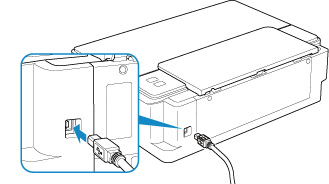 Tilslut printeren til computeren med et USB-kabel som vist på illustrationen nedenfor. USB-porten sidder bag på printeren.