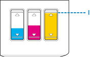• Fyld ikke blækbeholderen over blækbeholderens øvre grænselinje (I). Blæk over denne linje løber måske over, forårsager fejl eller beskadigelse af printeren og forhindrer udskrivningen.