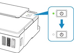- Kun irrotat virtajohdon pistorasiasta, paina KÄYTÖSSÄ (ON)-painiketta ja varmista sitten, ettei KÄYTÖSSÄ (ON)-merkkivalo pala. Virtajohdon irrottaminen siinä vaiheessa, kun KÄYTÖSSÄ (ON)-merkkivalo palaa tai vilkkuu, saattaa aiheuttaa tulostuspään kuivumisen tai tukkeutumisen. Myös tulostuslaatu voi heikentyä.
