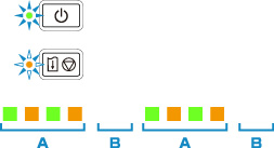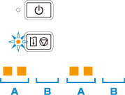 Als er een fout optreedt tijdens het afdrukken (het papier in de printer is bijvoorbeeld op of vastgelopen), knippert het Alarm-lampje of knipperen het AAN (ON)-lampje en het Alarm-lampje afwisselend op basis van de gegevens van de opgetreden fout. Er wordt een ondersteuningscode (foutnummer) op het computerscherm weergegeven (zie hieronder).