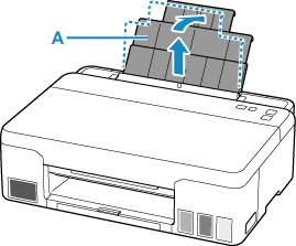 Húzza egyenesen felfelé és hajtsa hátra a papírtámaszt (A).