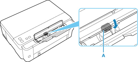 Miközben forgatja a hátsó tálca belsejében található laptovábbító görgőket (A), megnedvesítése után jól kicsavart tisztítókendővel törölje át a görgőket; a tisztítás során a görgők több mint két teljes fordulatot tegyenek meg.
