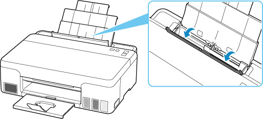 Betöltésekor nyomtatási oldalával FELFELÉ tegye be a papírt, és tolja a jobb és bal oldali papírvezetőt a papírköteg két oldalához.