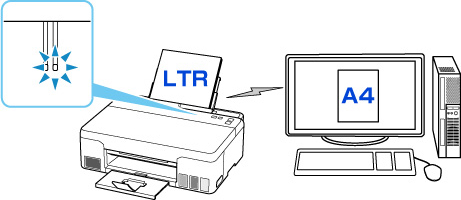 - Ha például a nyomtatáshoz az A4 papírméret-beállítás van megadva, a nyomtatón pedig a Letter papírméret-beállítás, akkor a nyomtatás megkezdése előtt A4-es papírt tegyen be.