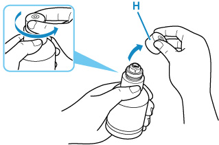 Tartsa függőlegesen a tintaflakont, és óvatosan csavarja le a kupakját (H).