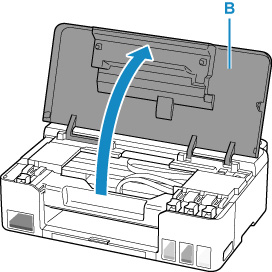 Nyissa fel a felső fedelet (B).