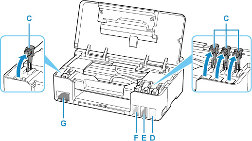 Nyissa ki a feltölteni kívánt tintatartály tartálysapkáját (C).