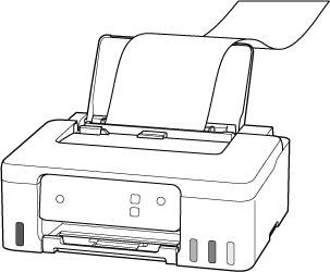 Wenn Sie auf langformatiges Papier drucken, stützen Sie das Ausgabepapier mit den Händen oder stellen Sie den Drucker so auf, dass das Papier nicht herunterfallen kann. Wenn das Papier herunterfällt, kann die bedruckte Seite verschmutzen oder verkratzt werden. Wenn Sie das Papier mit den Händen stützen, ziehen Sie darüber hinaus während des Druckvorgangs nicht kräftig am Papier.