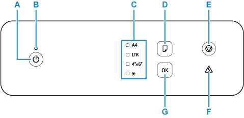 - Cancels operation when you press this button while printing is in progress. You can perform maintenance or printer's settings when you press and hold the Stop button.