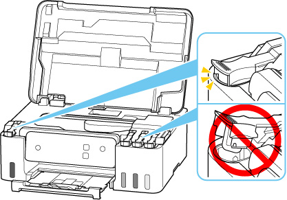 インクタンクのタンクキャップがしっかり差し込まれていることを確認してください。タンクキャップが浮いている場合は、タンクキャップを正しく差し込んでください。