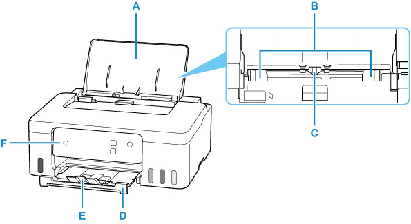 - Откройте устройство для загрузки бумаги в задний лоток.
