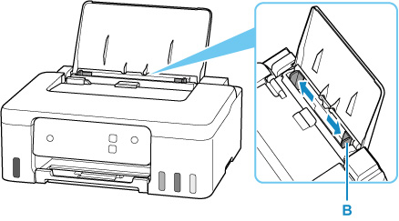 Skjut den högra pappersledaren (B) för att öppna båda pappersledarna.