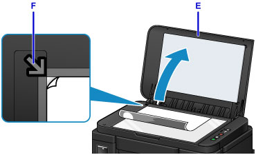 Plaats het origineel MET DE TE KOPIËREN ZIJDE NAAR BENEDEN en lijn het uit met de positiemarkering (F).