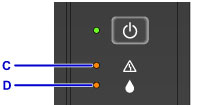 Εάν εμφανιστεί σφάλμα σχετικό με τη μελάνη που απομένει, οι λυχνίες Μελάνι (Ink) και Προσοχή (Alarm) θα αναβοσβήσουν για να σας ενημερώσουν για το σφάλμα. Μετρήστε πόσες φορές αναβοσβήνει η λυχνία Μελάνι (Ink) και προβείτε στις απαραίτητες ενέργειες.