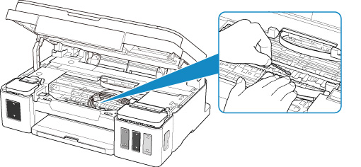 Ако проблемът не е решен след повторното почистване, издадените части във вътрешността на принтера може да са замърсени. Избършете мастилото от издадените части с памучен тампон или подобен материал.