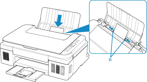 Ευθυγραμμίστε τους οδηγούς χαρτιού (D) με το πλάτος του χαρτιού.