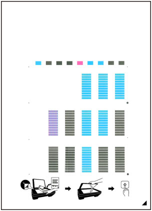 - Αν το φύλλο ευθυγράμμισης της κεφαλής εκτύπωσης δεν εκτυπώθηκε σωστά, πατήστε το κουμπί Στοπ (Stop) και έπειτα επαναλάβετε αυτήν τη διαδικασία από την αρχή.
