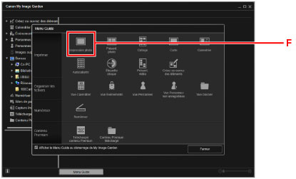Cliquez sur l'icône My Image Garden (E) dans Quick Menu.