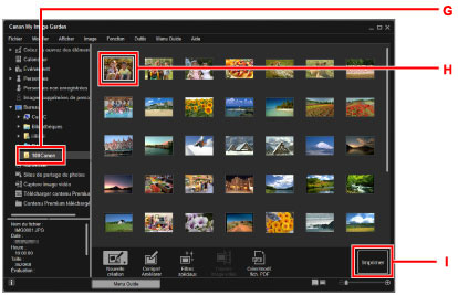 Cliquez sur le dossier (G) contenant les photos à imprimer.