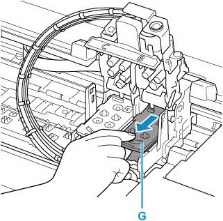 Издърпайте печатащата глава (G) и я преместете леко към вас.