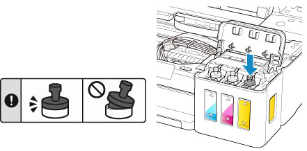 - След презареждане на резервоарите за мастило затворете добре капачката на бутилката за мастило.