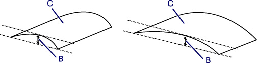 Ανάλογα με τον τύπο του χαρτιού, το χαρτί ενδέχεται να μουτζουρώνεται ή να μην τροφοδοτείται σωστά ακόμα και εάν δεν είναι κυρτωμένο προς τα μέσα. Ακολουθήστε τις παρακάτω οδηγίες για να ισιώσετε το κυρτωμένο χαρτί προς τα έξω κατά 3 χιλ. / 0,1 ίντσες (B) πριν από την εκτύπωση. Με τον τρόπο αυτό ενδέχεται να βελτιωθεί η ποιότητα της εκτύπωσης.