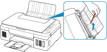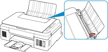Als er vreemde voorwerpen in de achterste lade zitten, schakelt u de printer uit, haalt u de stekker uit het stopcontact en verwijdert u het voorwerp.