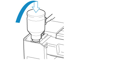 - Als de inkt niet in de inkttank wordt gespoten, verwijdert u langzaam de inktfles en plaatst u deze opnieuw.