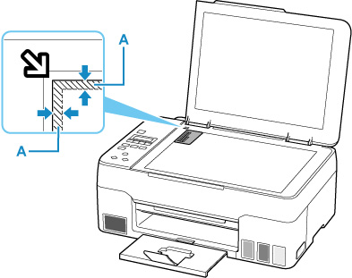 10. ID-kartico položite na stekleno ploščo z zadnjo stranjo obrnjeno navzdol, pri čemer pustite 2 mm (0,08 palca) ali več prostora med robovi (območje, označeno z diagonalnimi črtami (A)) steklene plošče, nato pritisnite gumb OK.