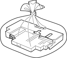 Placera den använda kassetten direkt i plastpåsen som medföljer den nya underhållskassetten och stäng påsen genom att knyta ihop öppningen för att förhindra att bläck läcker ut.