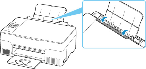 Wanneer u het papier in de achterste lade plaatst, plaatst u het met de afdrukzijde OMHOOG en lijnt u de rechter- en linkerpapiergeleiders uit met de papierstapel.