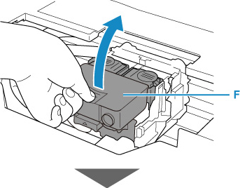 1. Ta tag i flikarna och öppna låsluckan på skrivhuvudet (F).