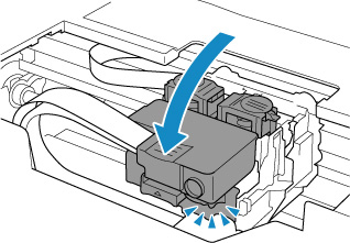 Tryck ned låsluckan på skrivhuvudet tills den klickar.