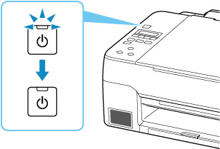 Tryck på PÅ (ON)-knappen och kontrollera sedan att PÅ (ON)-lampan har slocknat innan du drar ur nätkabeln. Om du drar ur nätkabeln medan PÅ (ON)-lampan lyser eller blinkar kan det leda till att skrivhuvudet torkar ut eller täpps igen och att utskriftskvaliteten försämras.